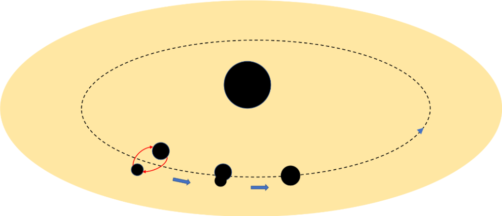 自2015年人类首次探测到引力波以来,超过100次引力波事件被探测到,其中绝大多数来自双黑洞并合。双黑洞是如何形成和演化的?目前学术界尚无定论。2018年,韩文标和合作者首次提出一种新颖的三体系统“极端质量比旋近双星(b-EMRI)”理论设想,即双黑洞是被一个超大质量致密天体(包括超大质量黑洞)抓住,形成了“三人组”。双黑洞在这个致密天体附近“跳舞”,进而辐射多频段的引力波。该理论设想提出后,引起国内外广泛关注。