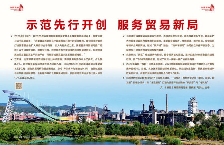 国务院先后发布《中国(北京)自由贸易试验区总体方案》《深化北京市新一轮服务业扩大开放综合试点建设国家服务业扩大开放综合示范区工作方案》《支持北京深化国家服务业扩大开放综合示范区建设工作方案》等文件,明确要求在高标准制度体系构建、现代化产业体系培育等方面形成可复制经验,更好为全国服务业开放创新发展发挥引领作用。