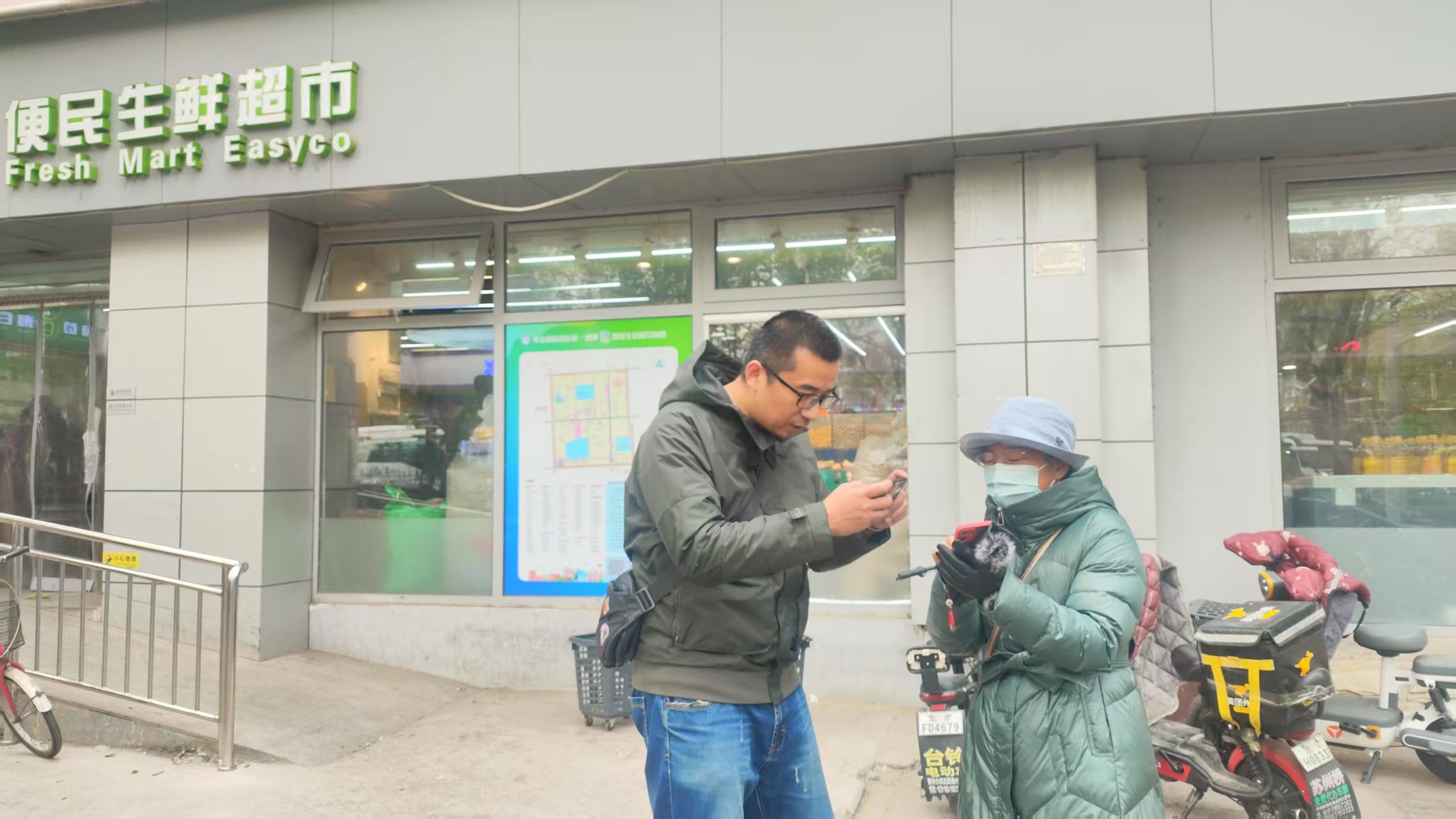 采访北京市中关村街道市民,交流如何使用手机,查看“一刻钟生活服务圈”信息