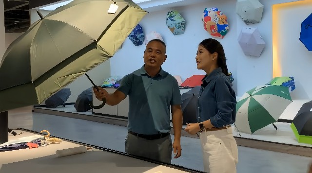 郸城县融媒体中心杨力帆在伞业产业园采访