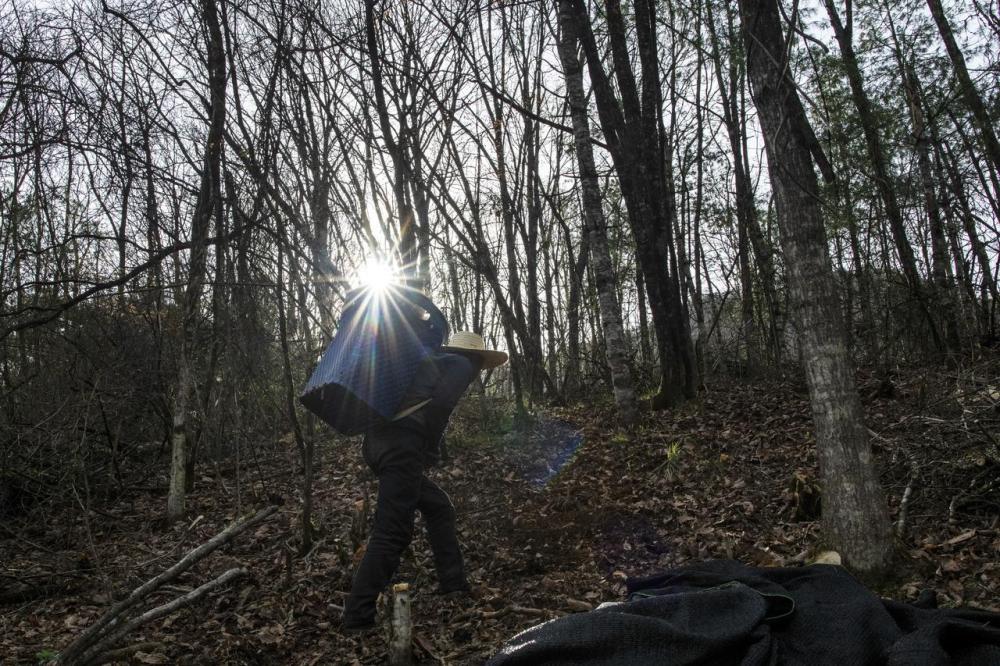 2024年4月8日,一名村民将菌棒送至天麻种植区。神农架林区依托林下资源优势,调整产业结构,探索出林药、林蜂、林菌等林下产业模式,盘活林下“金库”。记者 伍志尊 摄