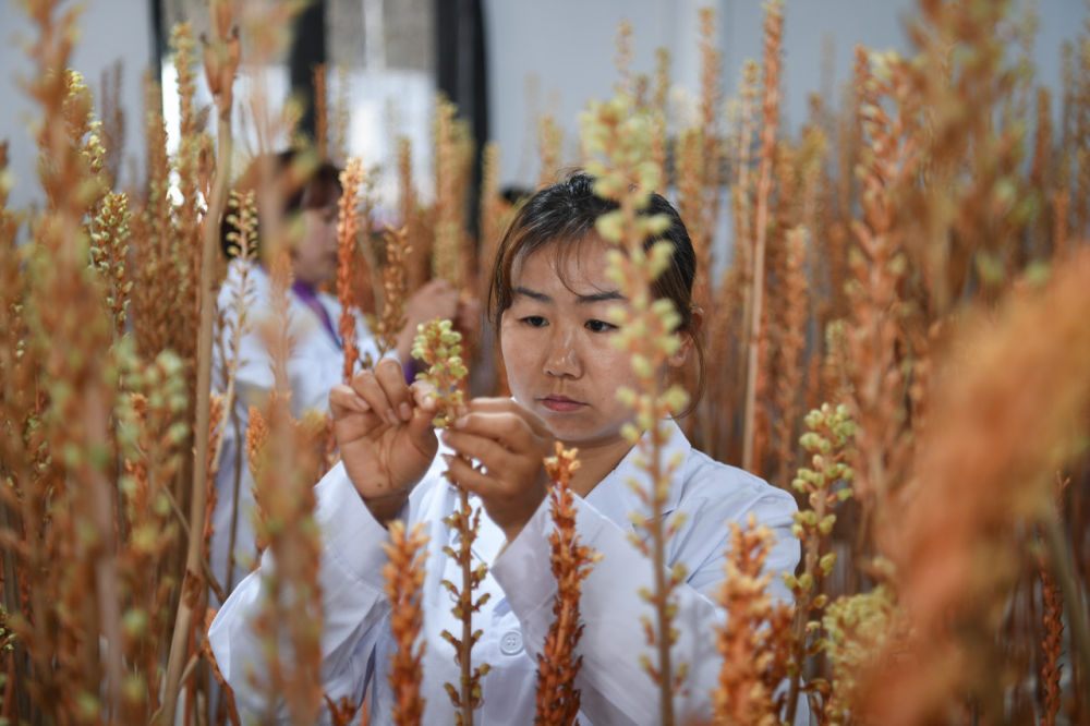 2024年4月8日,在神农架道地药材有限公司天麻育种室,工作人员在对天麻授粉。记者 杜子璇 摄