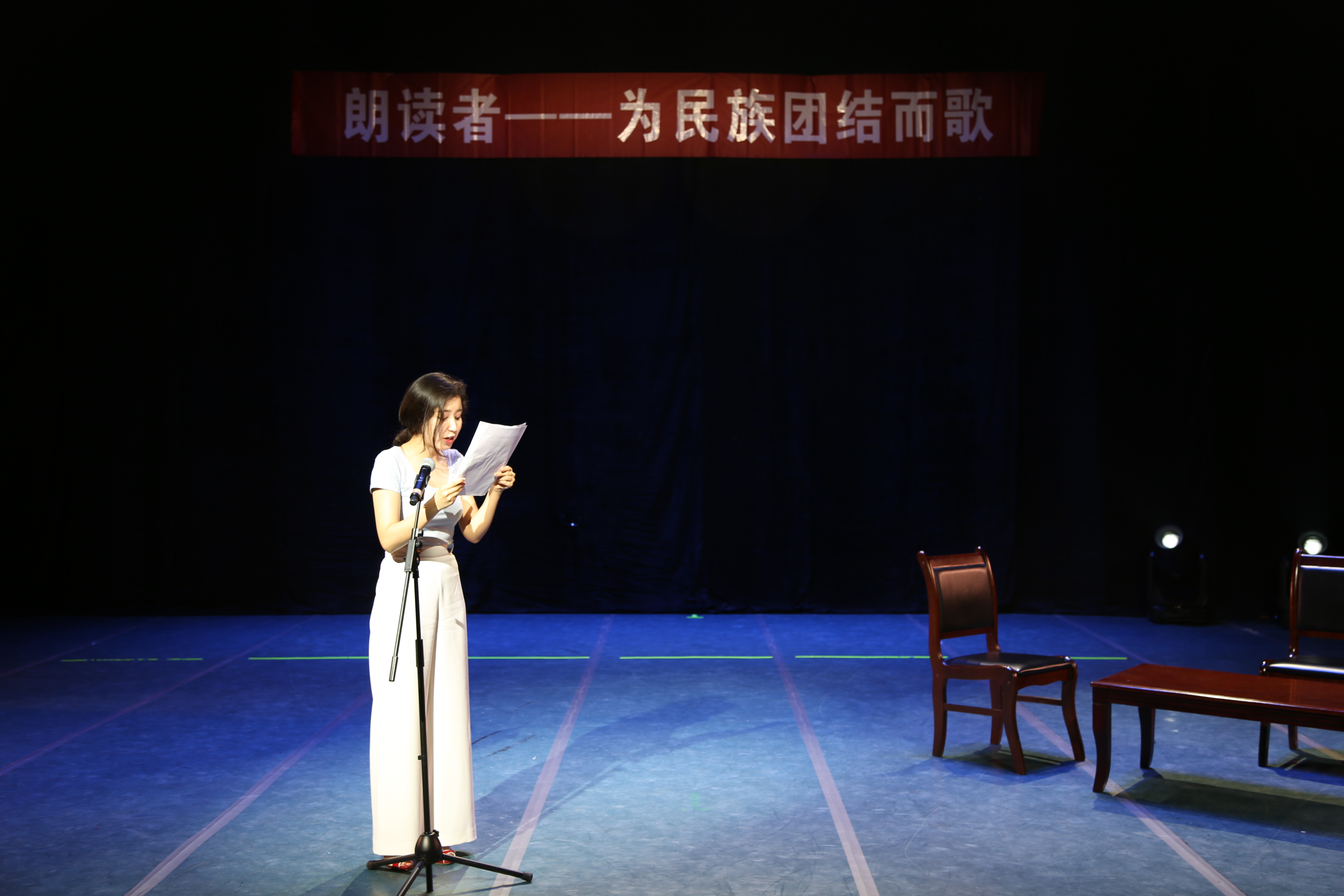2017年6月21日,当代兵团杂志社记者斯穆芭提·萨提别克参加兵团党委宣传部举办的“朗读者——为民族团结而歌”活动。
