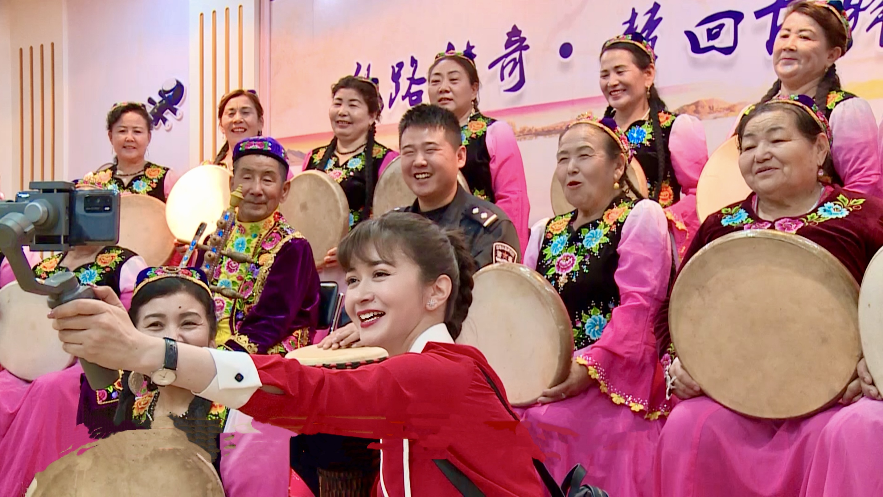记者现场采访记录全国民族团结进步模范集体——伊吾县下马崖边境派出所民警与当地百姓组建乐队,共庆“丝路传奇”活动