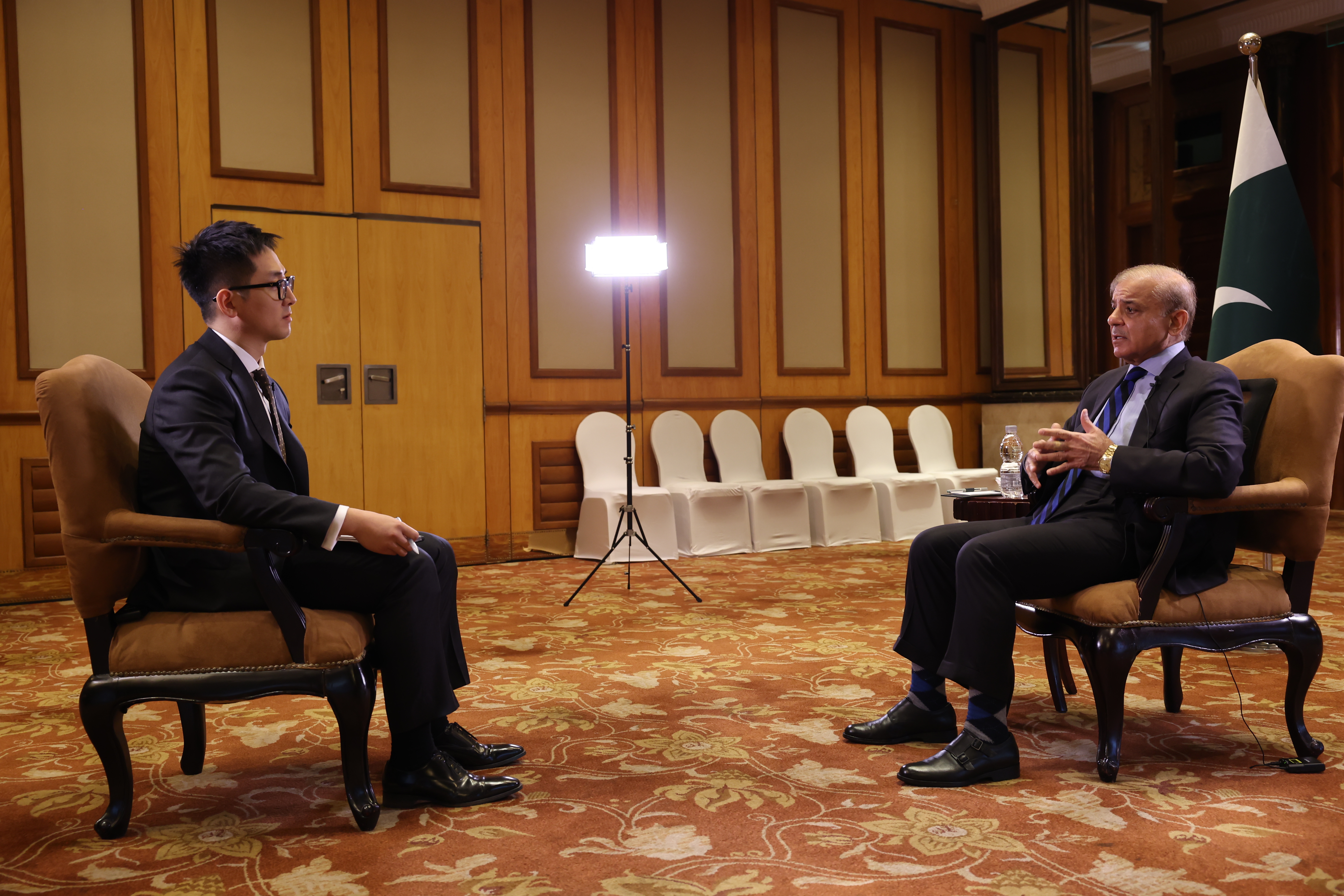 2022年11月2日,在北京专访来华访问的巴基斯坦总理夏巴兹·谢里夫