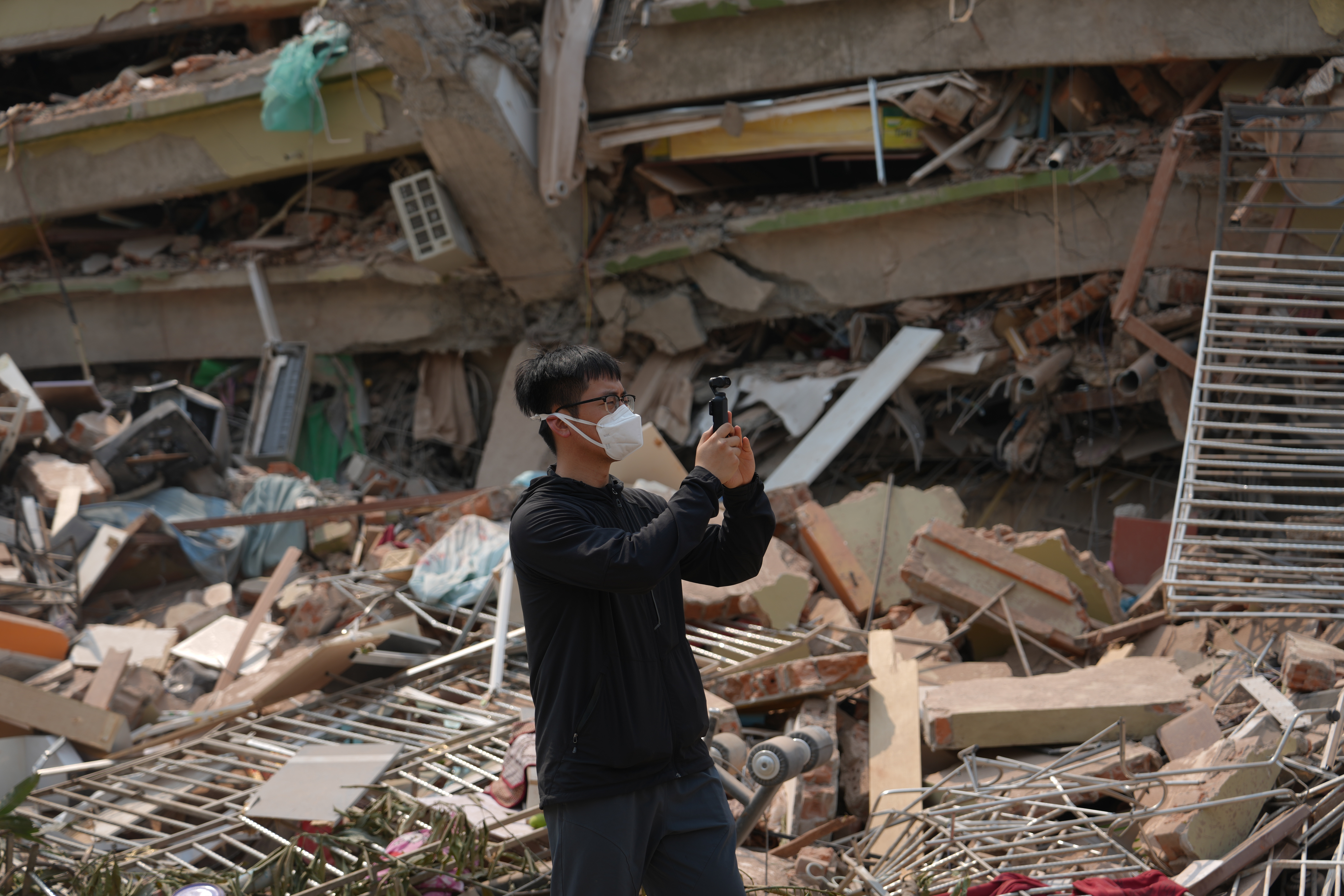 2025年4月1日,在缅甸曼德勒市随中国救援队一起赴天空公寓现场踏勘