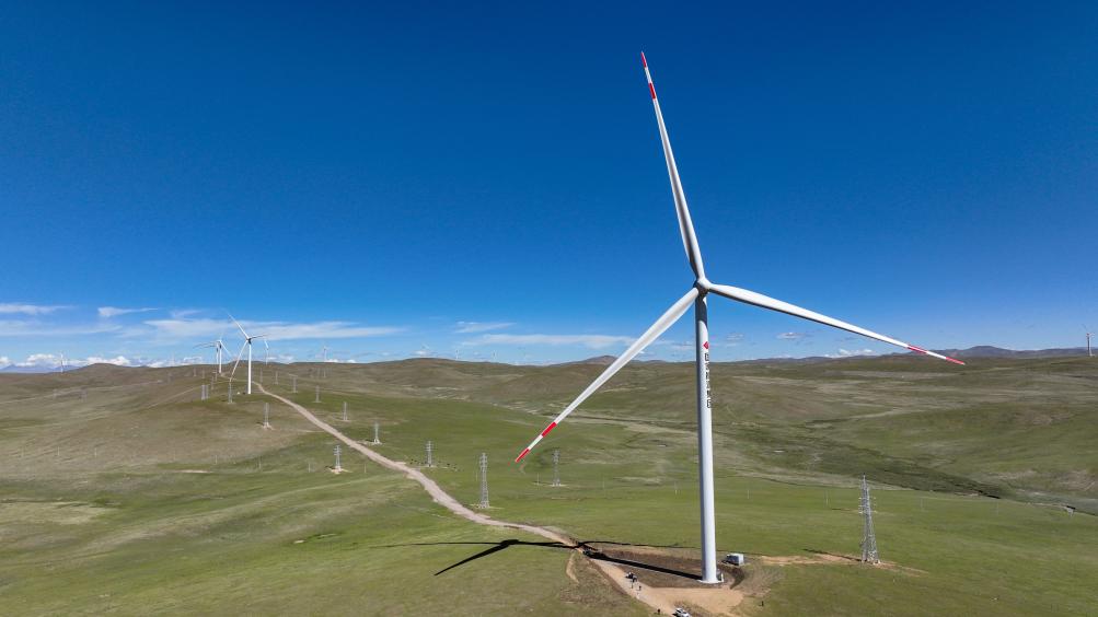 2025年7月17日拍摄的那曲市欧玛亭嘎100兆瓦风电场。新华社记者 晋美多吉 摄