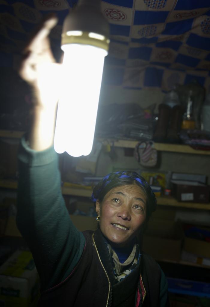 2013年6月7日,西藏浪卡子县普玛江塘乡牧民在家里使用太阳能照明设备。新华社记者 普布扎西 摄