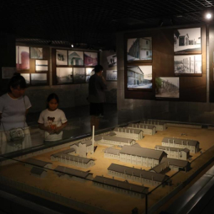8月12日,一名小朋友在沈阳二战盟军战俘营旧址陈列馆内参观。