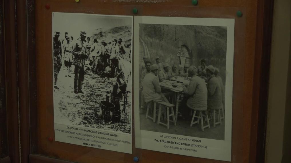 图为印度柯棣华故居纪念馆中展示的柯棣华在中国的照片。