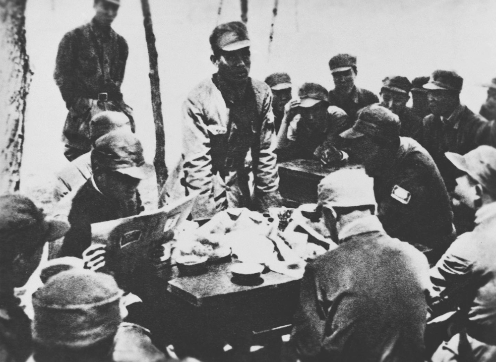 这是1941年12月,柯棣华(中间站立者)担任白求恩国际和平医院院长时给晋察冀八路军干部作报告。新华社发