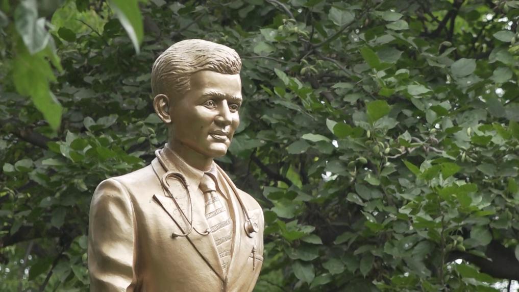 图为河北省石家庄的华北军区烈士陵园内的柯棣华像。新华社记者 白林 摄
