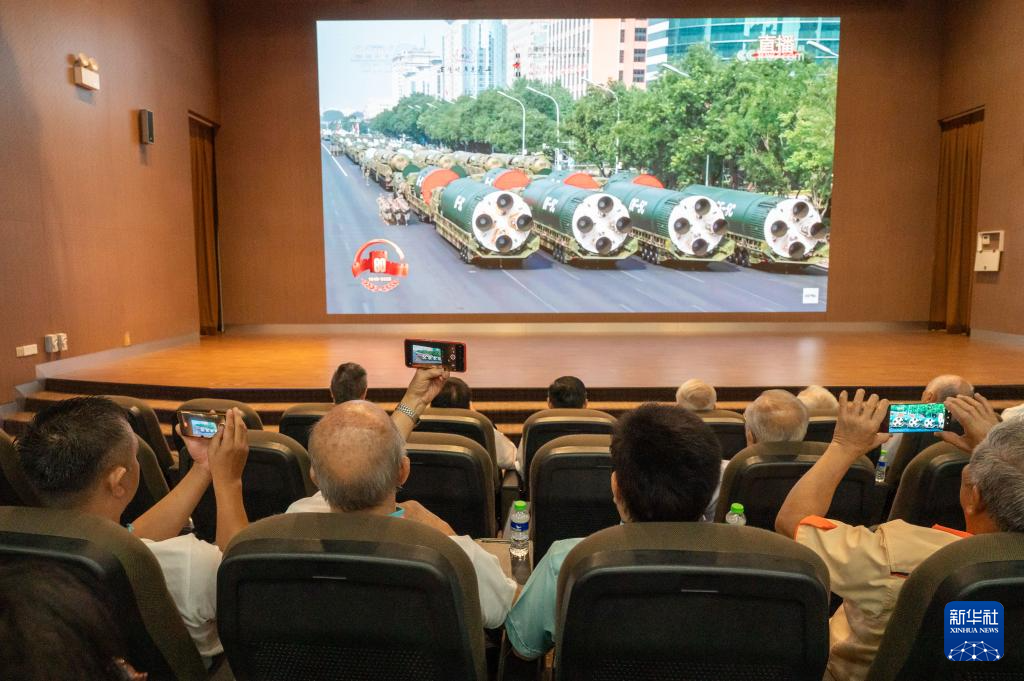 9月3日,在马来西亚吉隆坡,华侨华人观看纪念中国人民抗日战争暨世界反法西斯战争胜利80周年大会直播。