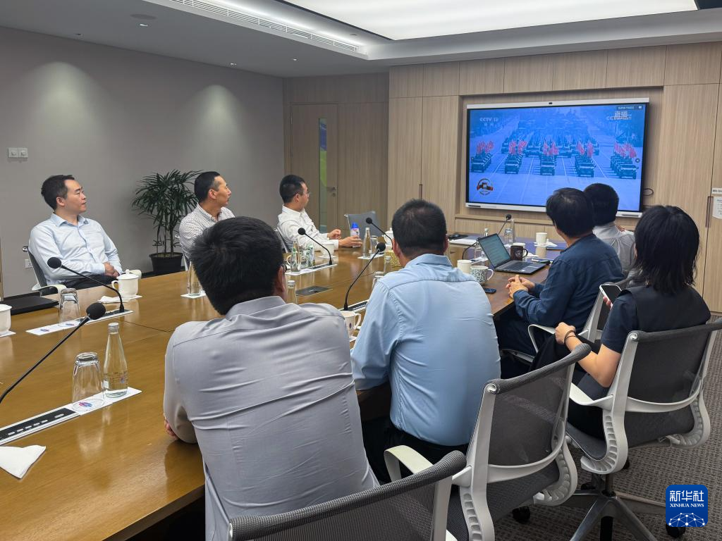 9月3日,在斯里兰卡科伦坡,中交集团科伦坡港口城项目公司员工观看纪念中国人民抗日战争暨世界反法西斯战争胜利80周年大会直播。