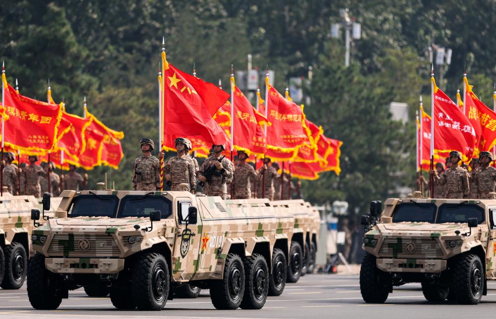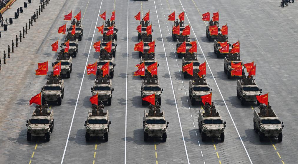 9月3日,纪念中国人民抗日战争暨世界反法西斯战争胜利80周年大会在北京隆重举行。这是战旗方队接受检阅。新华社记者 张铖 摄