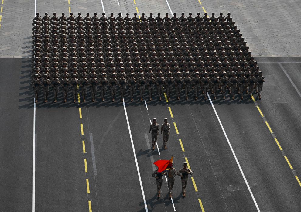 9月3日,纪念中国人民抗日战争暨世界反法西斯战争胜利80周年大会在北京隆重举行。这是网络空间部队方队通过天安门广场。新华社记者 陈益宸 摄