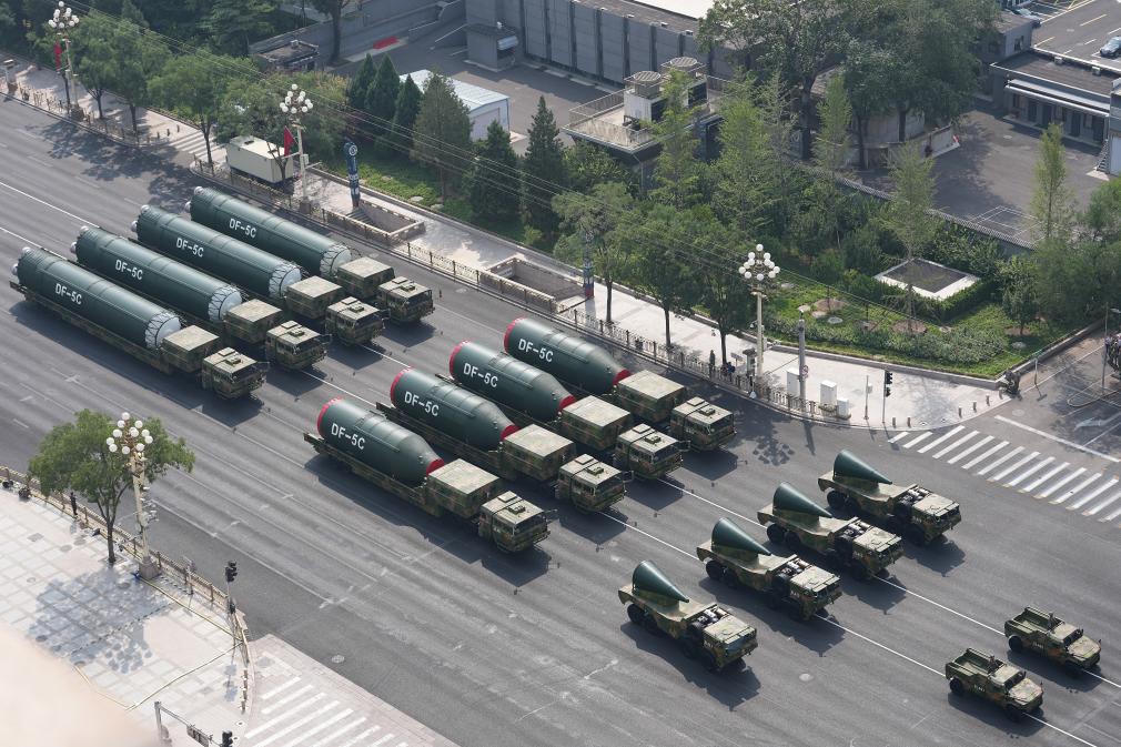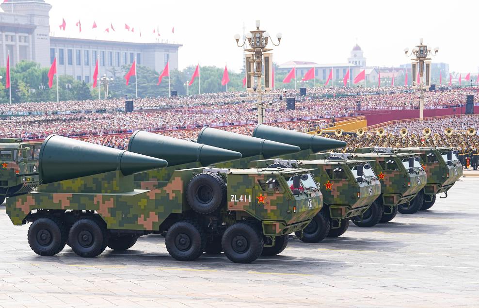 9月3日,纪念中国人民抗日战争暨世界反法西斯战争胜利80周年大会在北京隆重举行。这是核导弹第二方队接受检阅。新华社记者 胥冰洁 摄