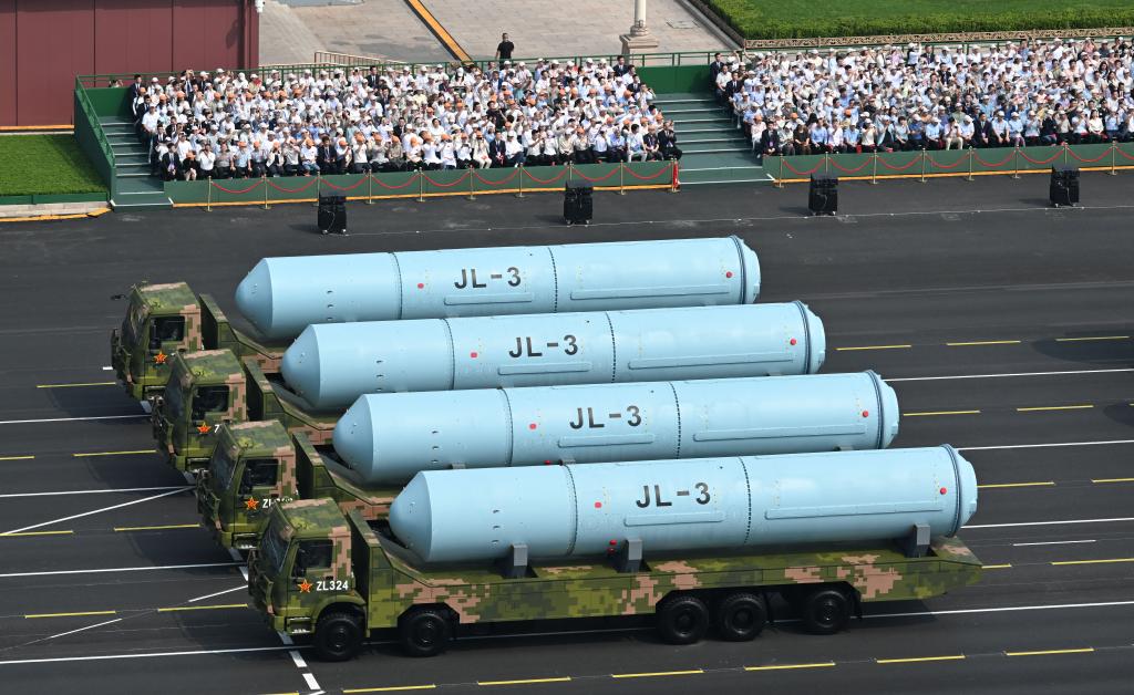 9月3日,纪念中国人民抗日战争暨世界反法西斯战争胜利80周年大会在北京隆重举行。这是核导弹第一方队接受检阅。新华社记者 马宁 摄