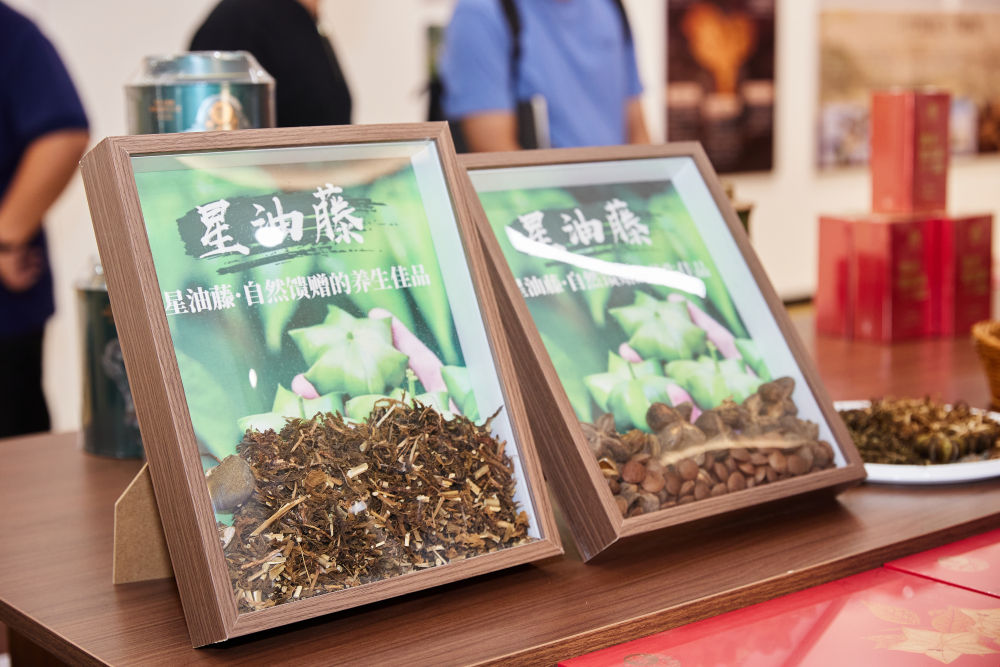 图为广西崇左市宁明县的粤桂协作陈皮星油藤展示中心展示的一些星油藤系列产品。