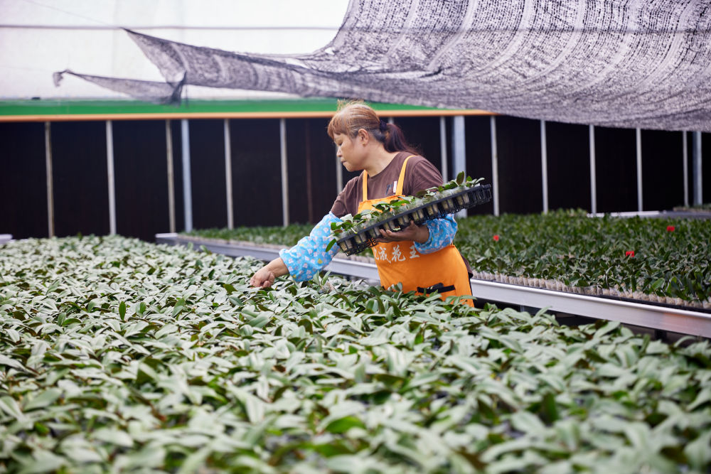 图为广西上林县粤桂协作花卉乡村振兴现代农业产业园内的花卉种植培育大棚。