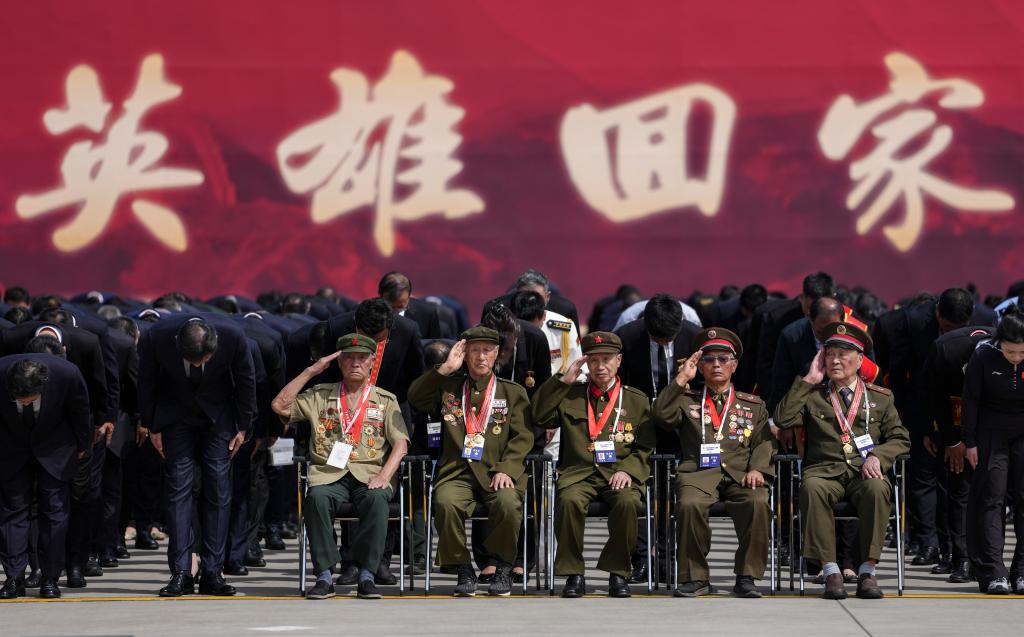 向归来的志愿军英灵致以崇高敬意
