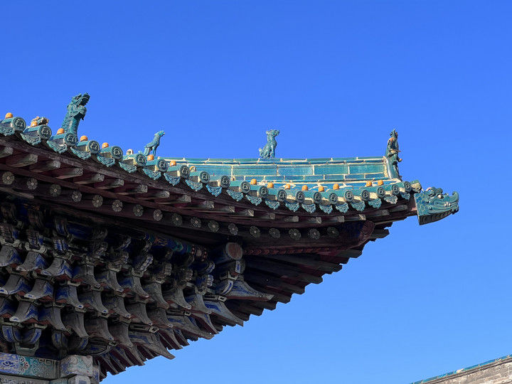 五脊六兽向来是中式建筑的点睛之笔,而山西琉璃,带着黄土高原的厚重与窑火淬炼的璀璨,各色琉璃在屋脊、牌楼、碑刻上流转生辉。这里的琉璃建筑一次次惊艳着世界。