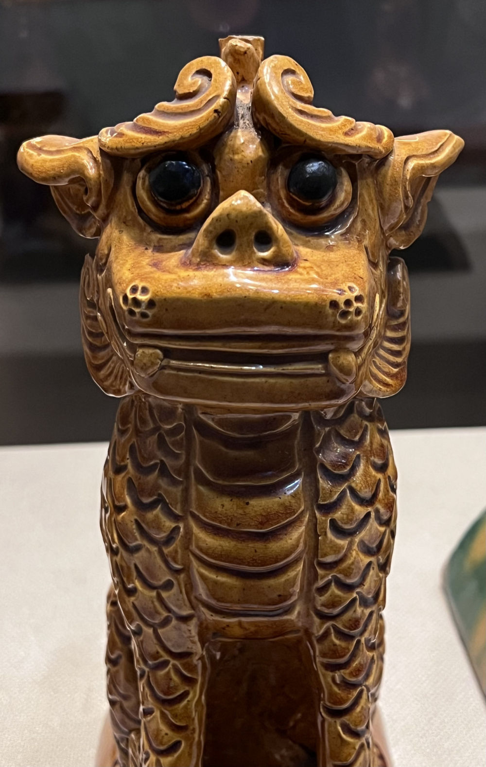 而眼前的这尊琉璃獬豸,一改传统怒目圆睁的威严形象,一脸呆萌,似乎动了“凡心”。“谁懂它的心思呢?”这定是又一个“蒙娜丽莎的微笑”。