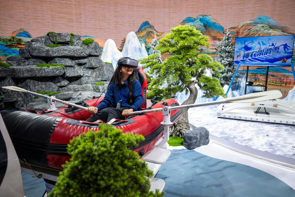 这是2025中国文化旅游产业博览会现场的一幕。本次博览会汇聚了全国文旅产业发展成果和创新实践案例,集中展示了一批AR、VR、人工智能等前沿技术在文旅领域的创新应用,为广大游客打造了一场可感、可触的科技文旅盛宴。