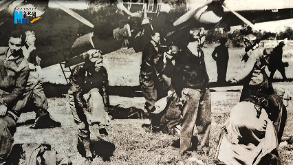 左图是陈纳德在二战期间的资料照片;右图是“飞虎队”飞行员在芷江机场准备战斗。