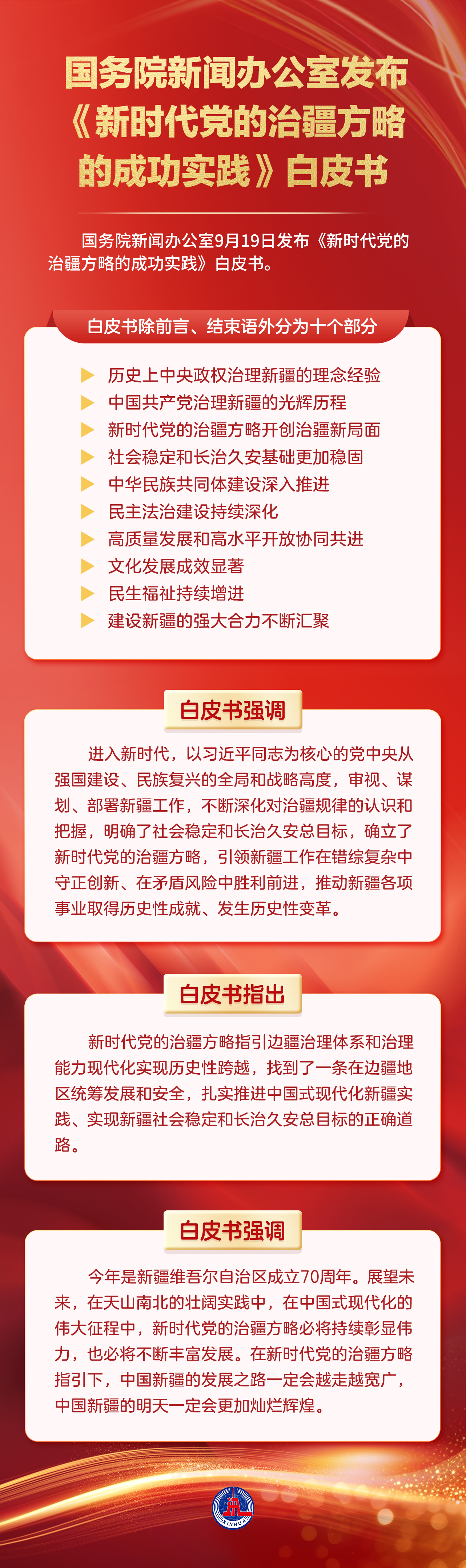 国务院新闻办公室9月19日发布《新时代党的治疆方略的成功实践》白皮书。