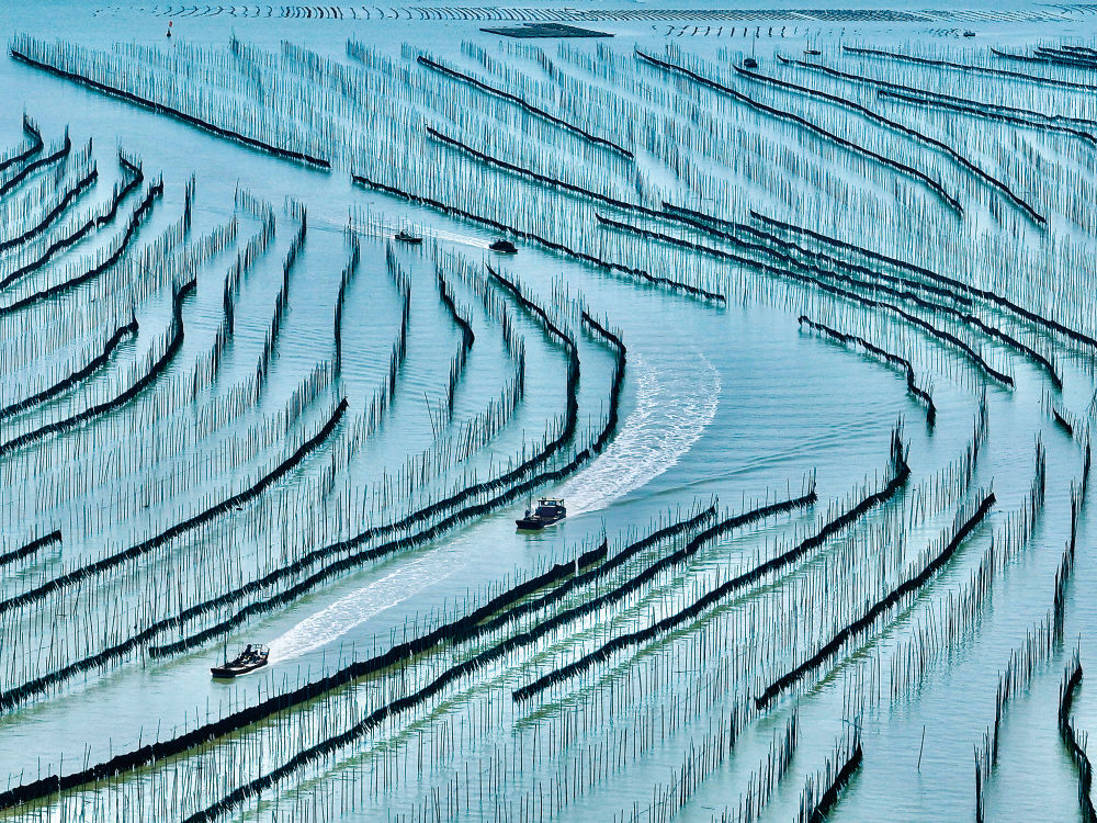 霞浦之美,因影像而广为人知。2002年,摄影师郑德雄踏遍霞浦海岸与滩涂,以镜头定格故土风貌,由此掀起霞浦摄影热潮。“那时候的霞浦滩涂,只是渔民劳作的寻常场所。而今日,竹竿、渔船和波光等寻常事物都能成为艺术创作的素材。”郑德雄回忆道。