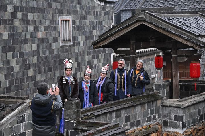 2025年1月20日,意大利客人在霞浦县半月里村参观拍照。