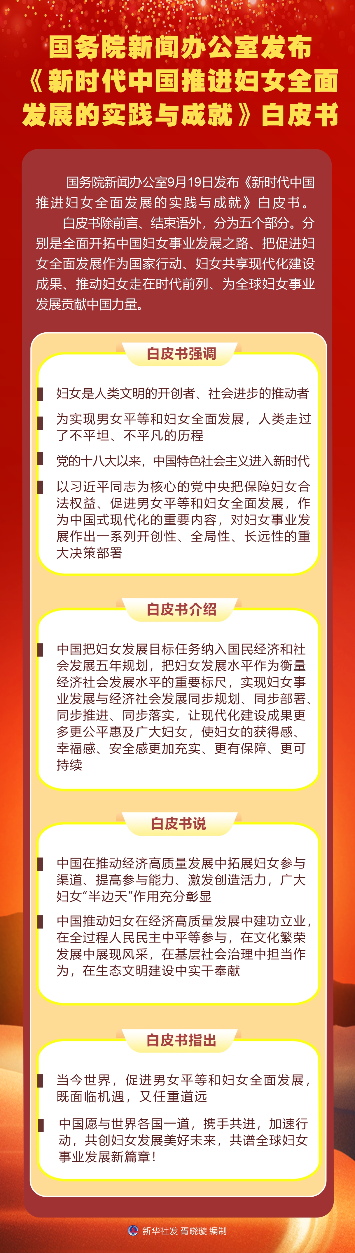 新时代中国推进妇女全面发展的实践与成就白皮书丨国务院新闻办公室发布《新时代中国推进妇女全面发展的实践与成就》白皮书-新华网
