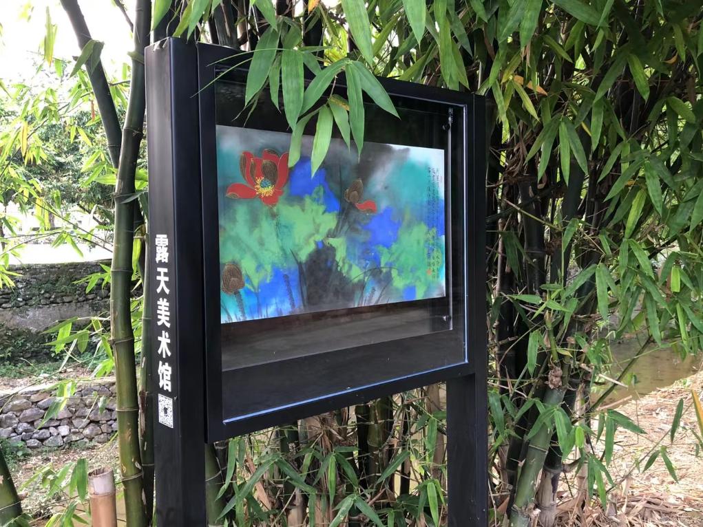 错落有致的古朴民居、青苔遍布的石板小路……走进广西北流市新圩镇河村,一派田园气息扑面而来。一个个装着精美画作的展箱放置在小河畔、树荫下、屋檐下,村民一边欣赏艺术,一边与自然相拥。