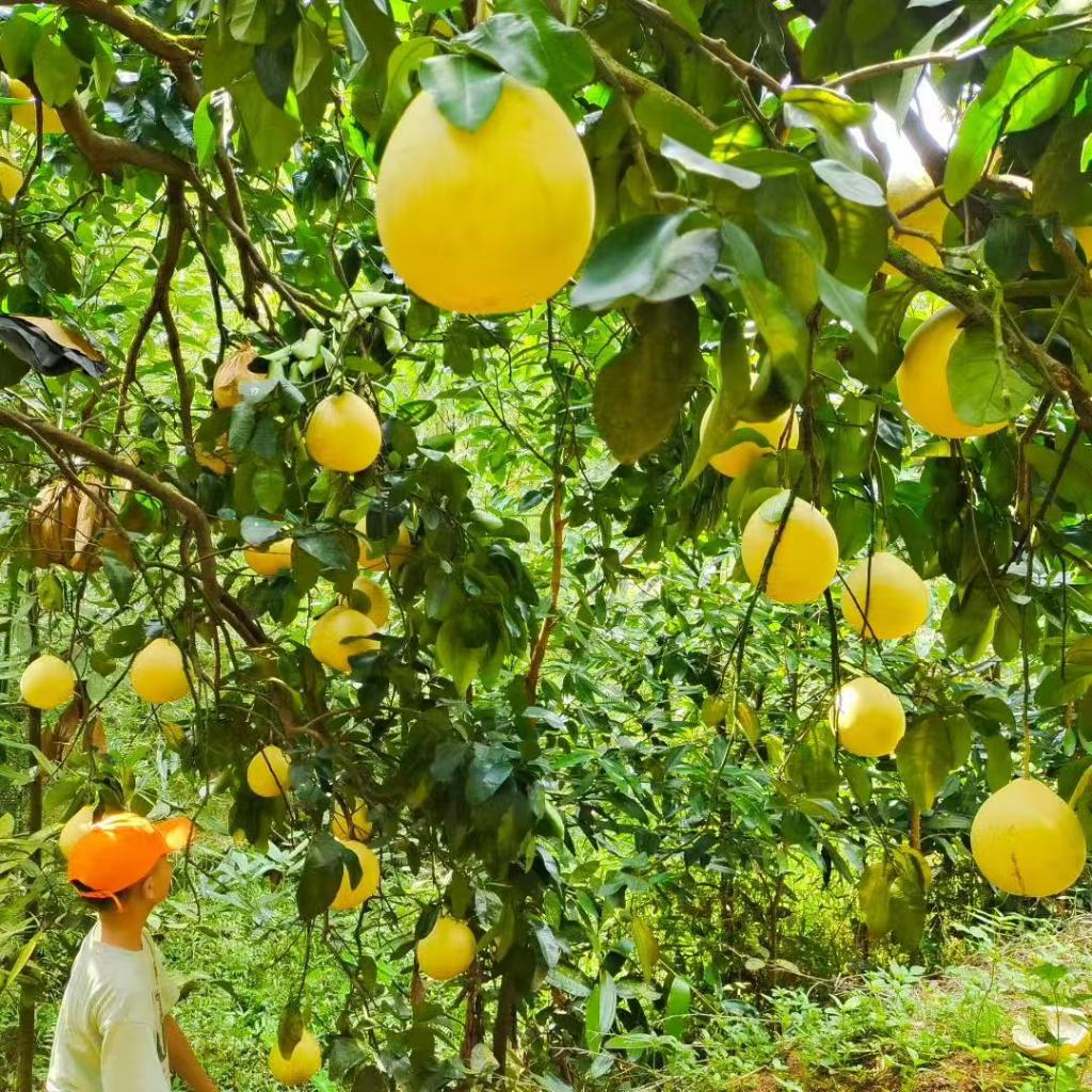 眼下,正是蜜柚成熟的季节。在广西玉林市容县的山坡上望去,一片片柚子林尽收眼底,黄灿灿的柚子沉甸甸缀满枝头。“现在正是蜜柚上市的季节。这是刚摘的蜜柚,果肉细嫩多汁,口感清爽香甜,今年预计产量达3000斤。”容县浪水镇长寿村沙田柚种植农场负责人胡玉生说,除蜜柚外,农场还种有100亩沙田柚,预计一个月后也将迎来丰收,初步预计产量达300吨。
