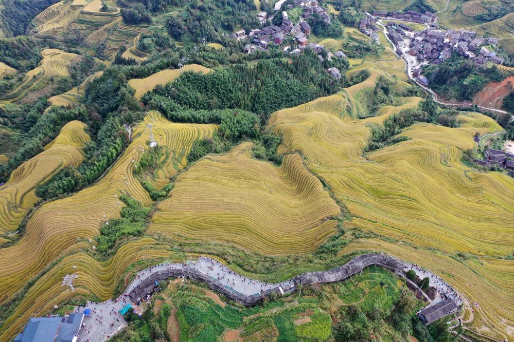 这是广西桂林市龙胜各族自治县龙脊镇秋日的梯田风景。新华社记者 陆波岸 摄