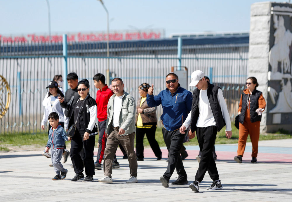 在中哈霍尔果斯国际边境合作中心内,来自哈萨克斯坦的游客穿过连接通道进入中国境内购物(2024年4月19日)。新华社记者陈朔摄