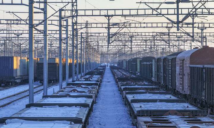 这是12月25日拍摄的在霍尔果斯铁路口岸准轨场。新华社发(王文杰摄)