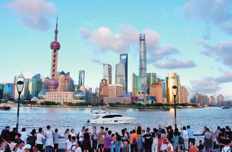 游客在上海外滩欣赏浦东陆家嘴景色(资料照片)。陈飞摄/本刊