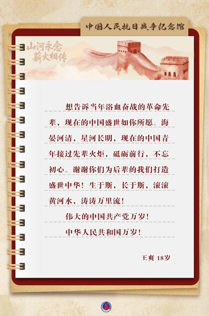 在9月30日烈士纪念日之际,通过根据各地革命纪念馆的观众留言制作的海报,致敬1931年9月18日至1945年9月2日5098天浴血奋战的历史,传承历久弥新的伟大抗战精神。
