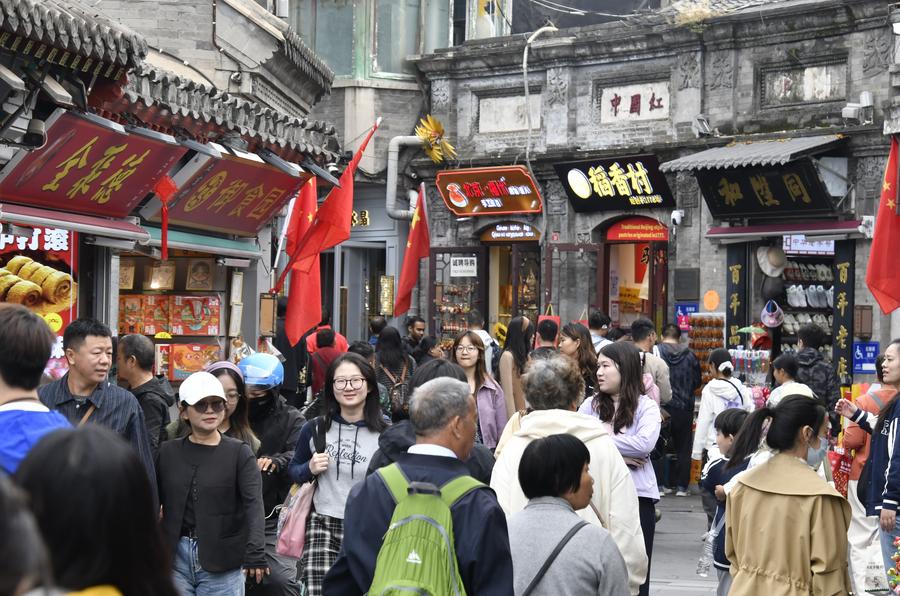 图为节日期间,游客游览北京烟袋斜街。新华社记者 李欣 摄