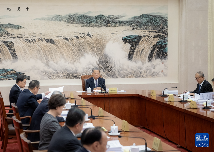 10月15日上午,十四届全国人大常委会第五十一次委员长会议在北京人民大会堂举行。赵乐际委员长主持会议。新华社记者 翟健岚 摄