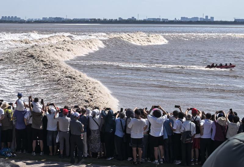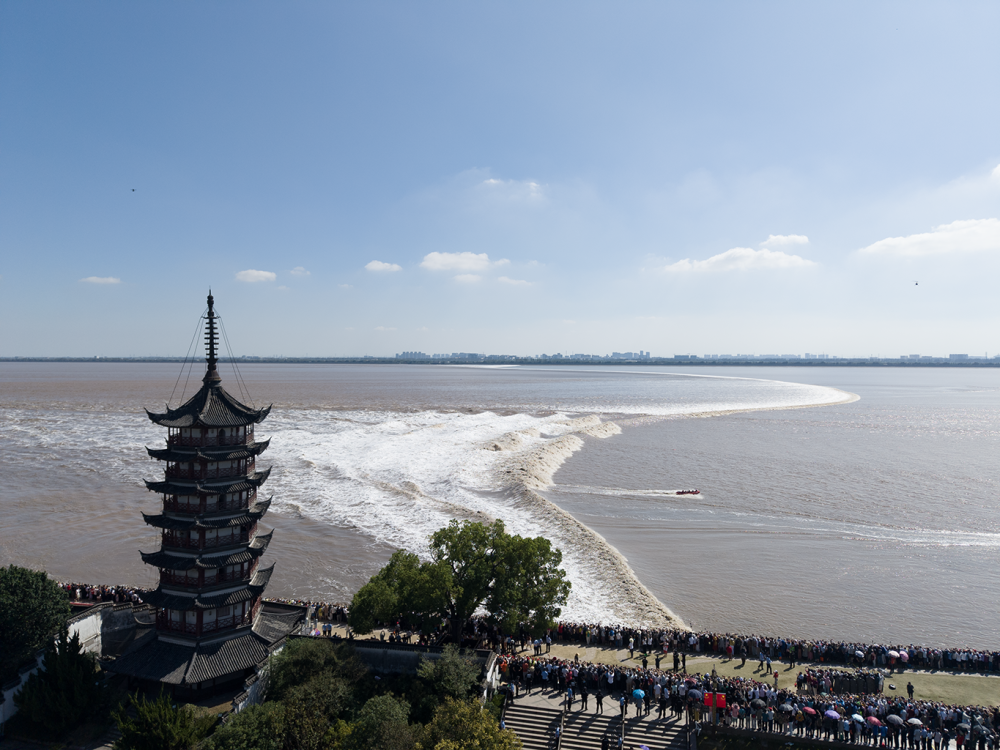 千百年来,钱江潮水奔流不息。在杭嘉湖一带,唐宋时期已有大规模观潮活动的记载,文人墨客竞相咏诵,文化习俗延续至今。尤其在每年中秋佳节前后大潮汛时段,八方宾客蜂拥而至,争睹潮水奇观。