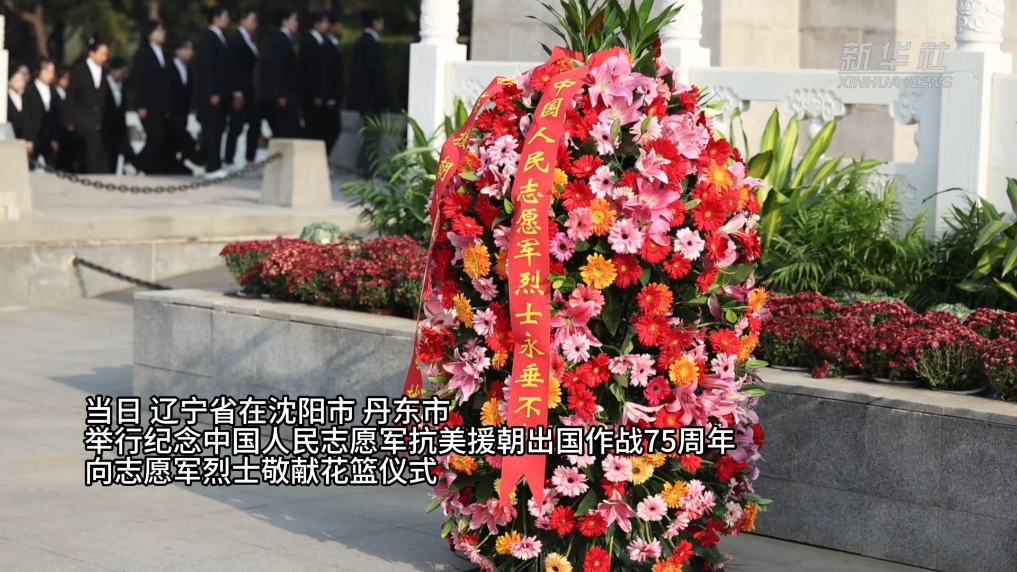 今年10月25日是中国人民志愿军抗美援朝出国作战75周年纪念日。当日,辽宁省在沈阳市、丹东市举行纪念中国人民志愿军抗美援朝出国作战75周年向志愿军烈士敬献花篮仪式,参加过抗美援朝出国作战的老战士和烈属代表、官兵代表及社会各界群众代表参加,共同缅怀先烈。