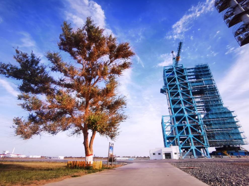 载人航天发射塔架旁的“树坚强”。
