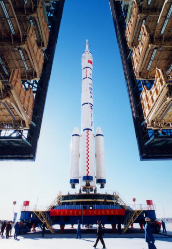 1999年11月20日,中国第一艘无人试验飞船神舟一号发射成功。图为整装待发的神舟一号飞船。新华社发