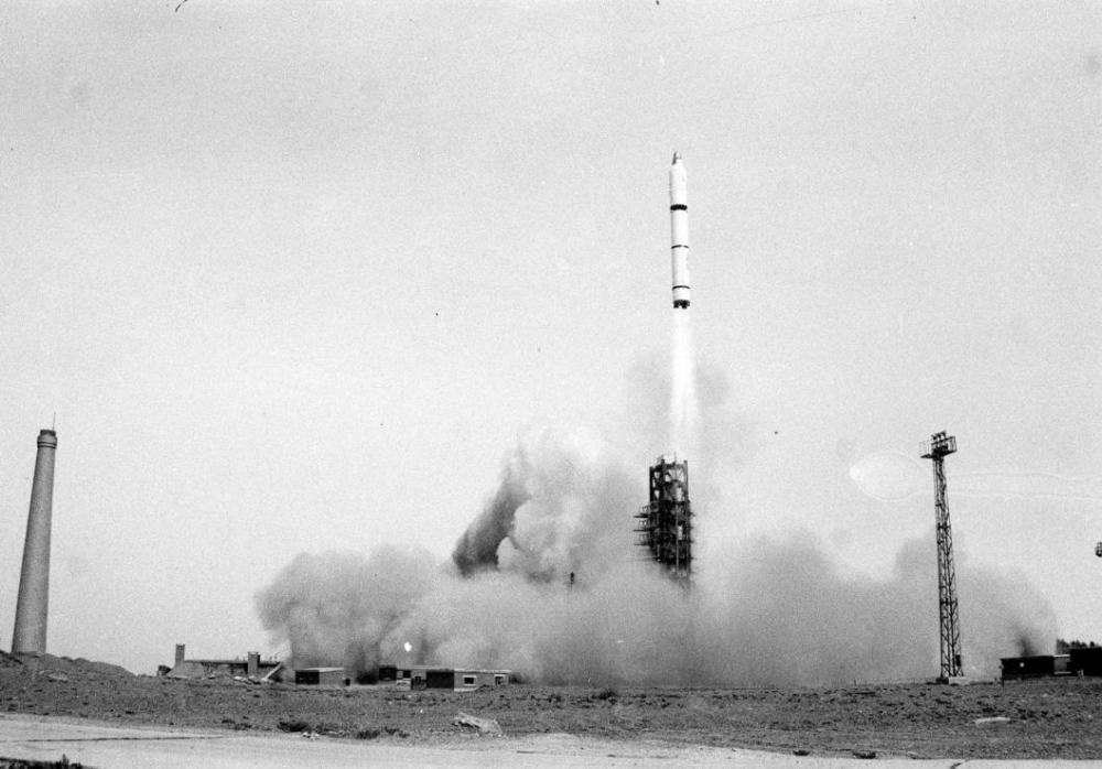 1990年10月5日14时15分,我国在酒泉卫星发射中心成功发射一颗科学探测卫星。新华社发 张桐胜 摄