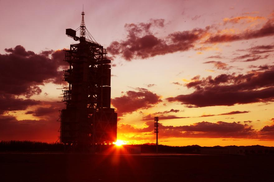 晚霞映照下的东风航天城发射场。新华社发(秦宪安 摄)
