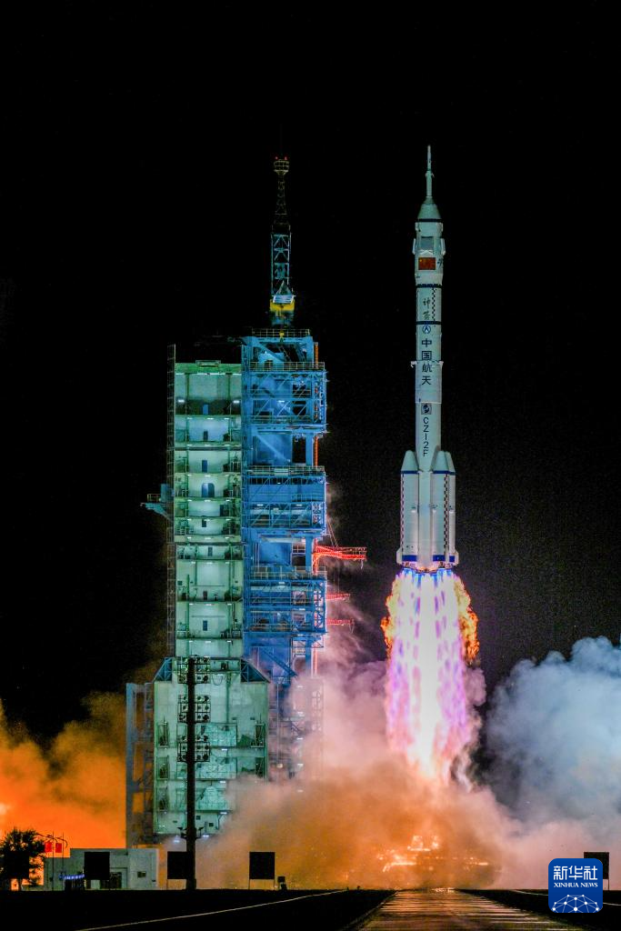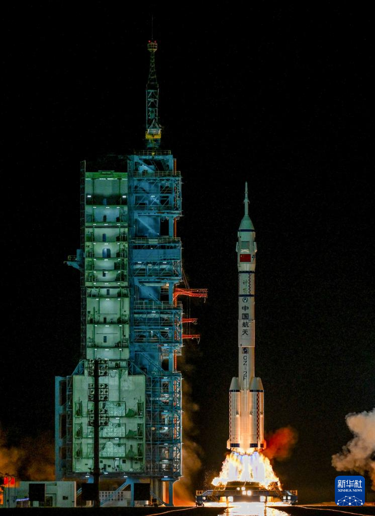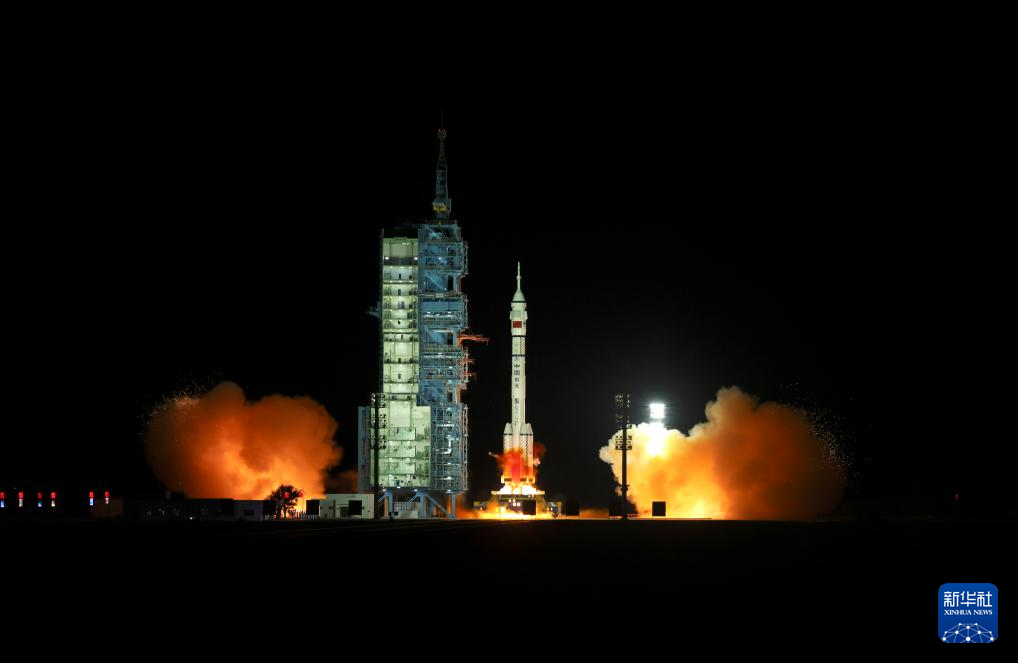 10月31日晚,搭载神舟二十一号载人飞船的长征二号F遥二十一运载火箭在酒泉卫星发射中心点火发射。新华社发(汪江波 摄)