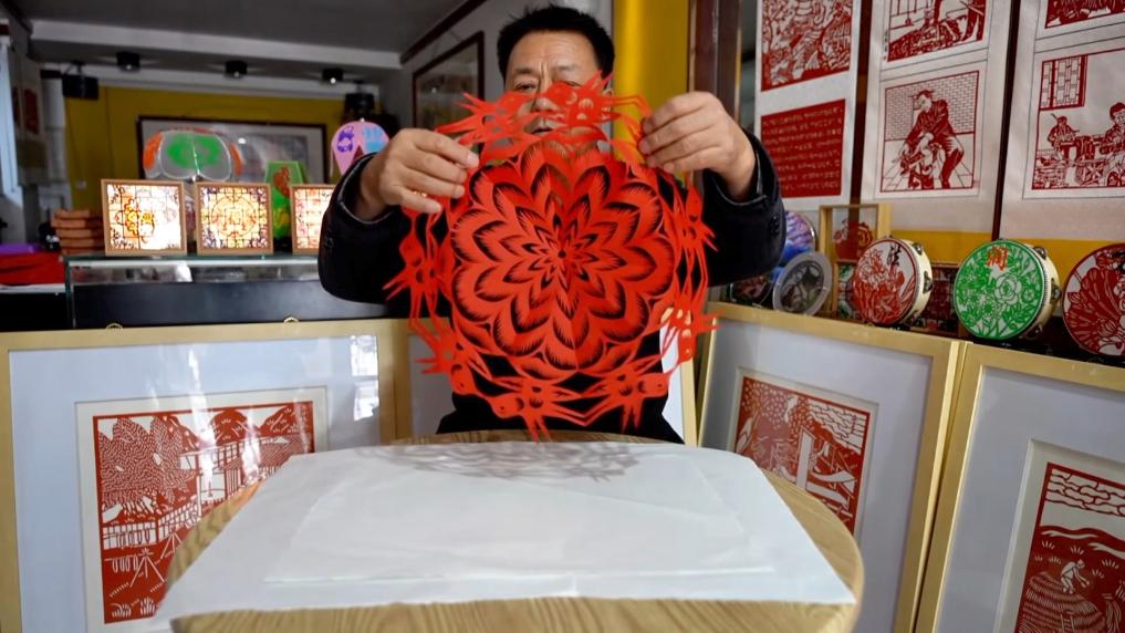 在付忠民的带领下,非遗工坊成立了。他们的剪纸作品,通过线上电商、线下展会等多种渠道销往全国各地。乡亲们跟着付忠民学手艺,不仅掌握了新技能,更靠自己的双手“剪”出了日子的新模样。